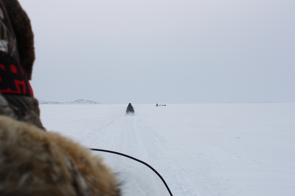 As the market was wrapping up, a country food market was meant to be just getting started in another part of town. I have missed every country food market – where they sell locally harvested meat and traditional foods – so far this winter and they are meant to be very interesting, so I made sure to get there a bit early. These markets are so popular that there was nothing left by the time I arrived! Sellers were not even making it into the tents they had set up, they would just pull up on their snow machines dragging a qamutiq (a big sled) full of meat and people would come running. One such qamutiq with a chopped up caribou pulled up while I was there and within two minutes everything had been claimed, negotiated and paid for, and people were trucking off with chunks of meat slung over their shoulder or shoved roughly into a bag. It was neat to witness. Caribou meat in particular is hard to come by in Iqaluit these days; you have to travel very far to hunt – the herds are cyclical and they haven’t been near the city in many years, though I have heard they used to wander the streets ten to fifteen years ago – so when up for sale it goes very quickly. At the last market I was told that there was even polar bear meat up for sale! And no dad, I will not bring home some polar bear meat for you to try!